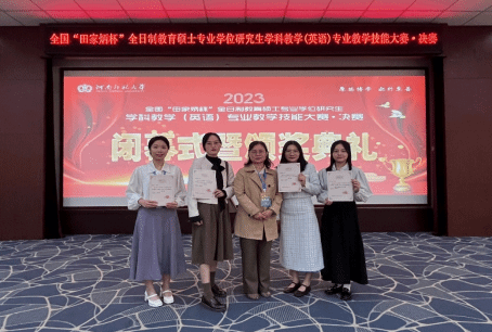 2023年10月20日至22日,全国“田家炳杯”全日制教育硕士专业学位研究生学科教学(英语)专业教学技能大赛总决赛在河南师范大学成功举行。本次比赛吸引了来自全国102所院校的学生踊跃参加,其中有230名选手来自86所不同院校成功进入了决赛。参加总决赛的院校包括国内著名的师范类高校,如北京师范大学、南京师范大学、西南大学等,竞争异常激烈。在强手如云的比赛中,永利集团304am登录学科教学(英语)专业硕士胡盼盼,李健平和饶瑶获得了三等奖,赵晨荣获优秀教学设计奖。