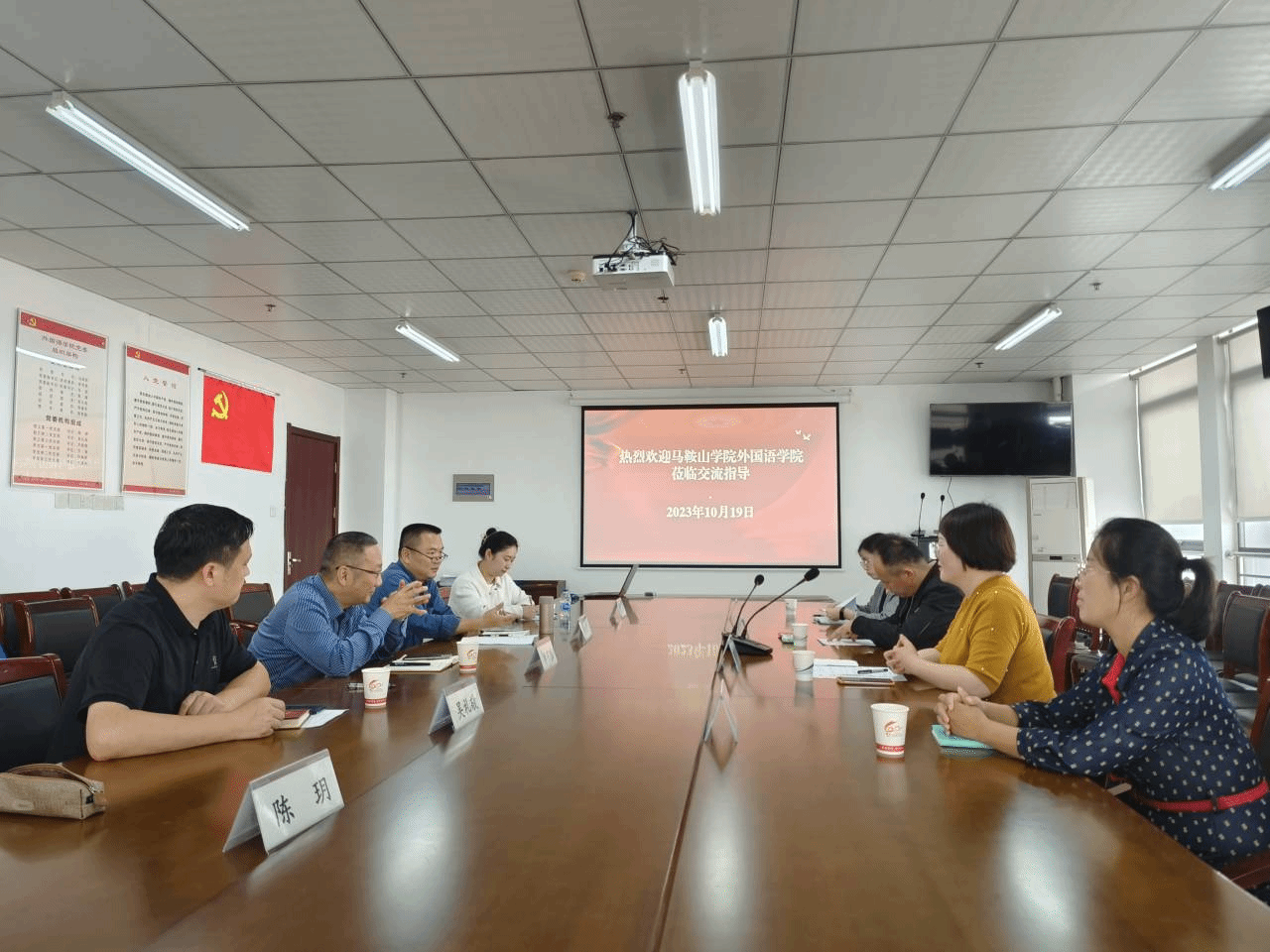 10月19日,马鞍山学院永利集团304am登录党总支书记郑选斌、执行院长孙倩、副院长王静、小语种教研室副主任潘晓昱一行四人来我院永利集团304am登录开展调研交流活动。学院党委书记马四民、院长李可胜、副院长吴礼敬、西班牙语系主任张照及专业教师陈玥出席交流会,会议由吴礼敬主持。