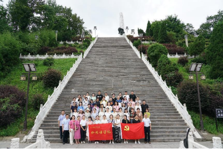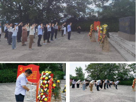 在参观革命旧址群,走进陈列馆瞻仰先烈革命遗物后,全体党员在革命烈士陵园向英烈们敬献了花圈,并鞠躬默哀。随后,党员同志们在学院党委书记马四民的带领下,重温了入党誓词。