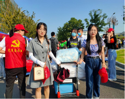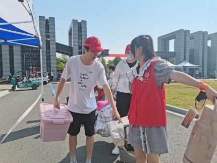 早晨7时许,党员志愿者们统一乘车前往滨湖校区,大家统一佩戴党员徽章和口罩,一下车便投入到迎新工作当中。校内学院报到处,党员志愿者们主动上前确认身份,一把接过沉甸甸的行李箱,帮忙搬运行李,指引新生按要求完成核酸检测,并全程陪同新生办理宿舍入住和教室报到等系列手续。同时,党员志愿者们还耐心地解答新生的各种疑问,叮嘱新生要提高安全防范意识,谨防各类电信诈骗,努力为初入大学校园的新生带去安全感。