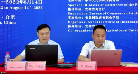 由商务部主办,安徽省商务厅指导的安徽省援外培训项目暨“一带一路”沿线国家研修班于2022年7月在安徽国际商务职业学院开始实施。此次,我院与安徽省翻译协会密切合作,由曹艳丽、吴礼敬、汤菲菲、李政四位老师分别承担项目前三期相关课程的英语和西班牙语口译工作。
