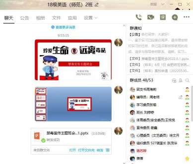 会上,周贵勤通过线上会议的形式为毕业班同学们介绍毒品的种类及其危害,叮嘱同学们不管何时何地都要不断提升安全意识,保护好自身安全,珍爱生命,远离毒品。