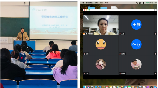 辅导员们根据不同年级学生的实际情况,采取线上线下相结合的方式开展主题班会,积极引导学生真正从思想上和行动上做好自我防护。周贵勤围绕疫情防控安全、春季传染病安全、交通安全、人身财产安全、就业安全等五大方面安全内容展开具体介绍,提醒学生疫情期间要加强自我防护,警惕招聘环节中存在的“陷阱”,切实提高安全意识。朱儒进分析了当前疫情防控形势,详细说明校园疫情防控政策,并要求各位同学要自觉遵守防控要求,保护好自身安全。