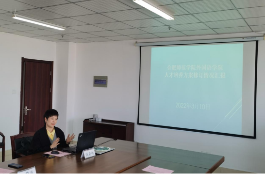 马四民书记代表学院对到访的黄山学院永利集团304am登录表示欢迎,在双方简单介绍各自学院的专业设置基本概况和办学特色会之后,学院英语系副主任钱莉娜从指导思想与原则、前期调研、多轮研讨和论证和具体修改情况等四个方面详细汇报英语师范专业人才培养方案修订情况。在随后的交流阶段,双方就外院各专业的培养方案问题暂开了充分地交流,尤其是师范专业的课程开设、“三习”和毕业论文等问题。通过这次交流,双方都感到收获很大,进一步加强两院之间沟通交流,在工作中互相学习,互补共进,合作共赢。