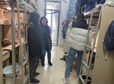 走访宿舍过程中,学生们正在打扫卫生、收拾行李,李新宇书记首先对返校学生表示诚挚地欢迎,“刚开学心情怎么样?”、“寒假在家做了什么?”、“要注意个人防护”……,每到一个宿舍,李新宇都会与学生们进行亲切交谈,仔细倾听大家寒假期间的学习和生活情况,了解学生们返校后的思想和心理状态。李新宇强调,希望同学们在疫情期间能够自觉遵守学校相关规定,做好个人防护,适当加强锻炼,提高身体抵抗力。同时能够及时摆脱“假期综合症”,调整好作息时间,尽快适应疫情防控背景下的教学方式,从而以更加积极向上的精神面貌投入到新学期当中去。