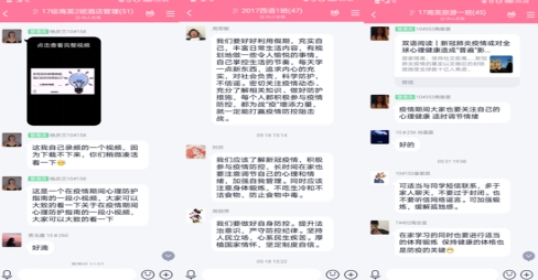 2017级商务英语专业,于5月21日,通过线上座谈会开展春季安全教育主题班会,辅导员苏珊在会议上强调了要加强学习习近平新时代中国特色社会主义思想和社会主义核心价值观,坚定“四个自信”,解读宗教政策,反对非法宗教。另外,心理委员从心理健康的角度通过班级QQ群上传疫情期间心理防护指南的视频,提醒学生疫情在家期间要注意调节自己的心理与情绪,加强自我管理,同学们纷纷学习并开展讨论分享自己在家调节心情的方式方法。生活委员就卫生安全和饮食安全,向同学们提了一些建议和方法,提醒大家要养成良好的卫生习惯,注意个人卫生。安全委员提醒同学们谨防电信诈骗,远离“网贷”,树立正确的消费观与价值观,也提醒同学们找工作、做兼职中也要识别就业陷阱,谨防传销。