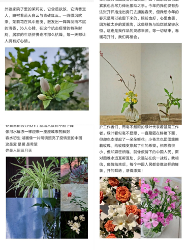 此次比赛首先由选手进行绿植的布置与拍摄,并附上一段作品的文字描写,说明作品的寓意,再把作品交给相关的负责人。比赛的消息一发出来,就有很多同学踊跃报名,每位选手都用心捕捉生活中的美,寓意也是十分新颖,表达了选手内心的爱与期望。有的表达了对祖国的美好祝愿,有的则是对一线人员精神的赞美,也有的作品表达了自己对生活的感悟。