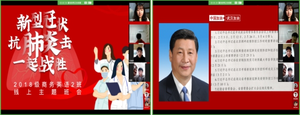 此次“众志成城共克时艰 坚守使命服务青年”网络主题班会,辅导员老师与学生一起学习习近平总书记关于疫情防控的重视指示,宣传科学防控知识,谈责任与担当,谈爱党爱国,谈生命教育,谈爱与感恩,谈勇敢逆行,谈规则教育……用一个个鲜活感人的抗“疫”故事,去践行初心和使命,危机时刻责任与担当,众志成城,坚定抗“疫”必胜的信心与决心。同学们表示:一定会积极配合防疫工作,做到“身宅心不宅”、“延期不停学”,科学防疫,勇于担当青春使命,弘扬中华民族在疫情和灾难面前“一方有难、八方支援”的崇高精神,真正做到“众志成城、共克时艰”。
