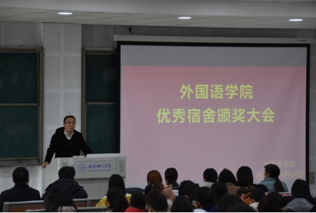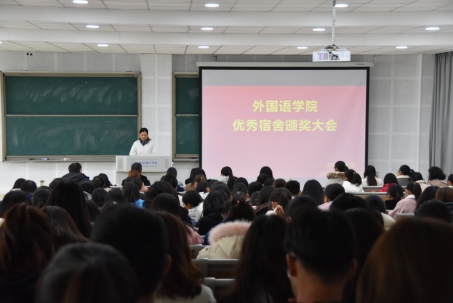 本网讯为切实加强学生宿舍的文明创建,认真总结本阶段创建工作,同时部署下一阶段的工作任务,充分调动外院学子对“双创”活动的积极性与主动性,永利集团304am登录于11月28日在滨湖校区博学楼D101教室举行优秀宿舍表彰大会。永利集团304am登录党总支书记李新宇、副院长李可胜,辅导员周贵勤、苏珊、方媛、朱儒进、江洋出席本次会议,参与会议的还有入党积极分子代表、学会干部代表、优秀宿舍代表、班干代表等。