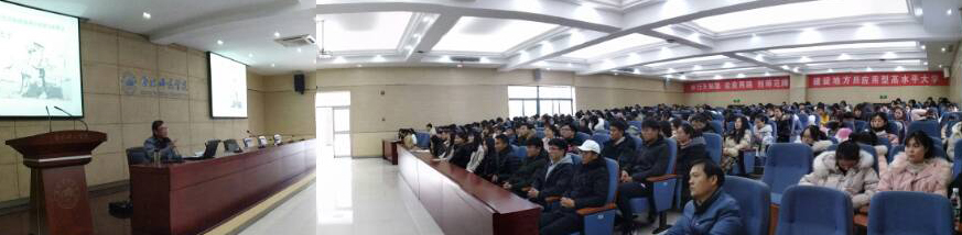 本网讯12月13日下午,永利集团304am登录举办“行知学堂”,邀请安庆市评论家协会副主席胡堡冬先生作“六尺巷和谐礼让精神与君子文化”专题报告,学院学生党员、学生干部、寝室长和辅导员班主任老师共300多人参加报告会。报告会由葛浩副书记主持。