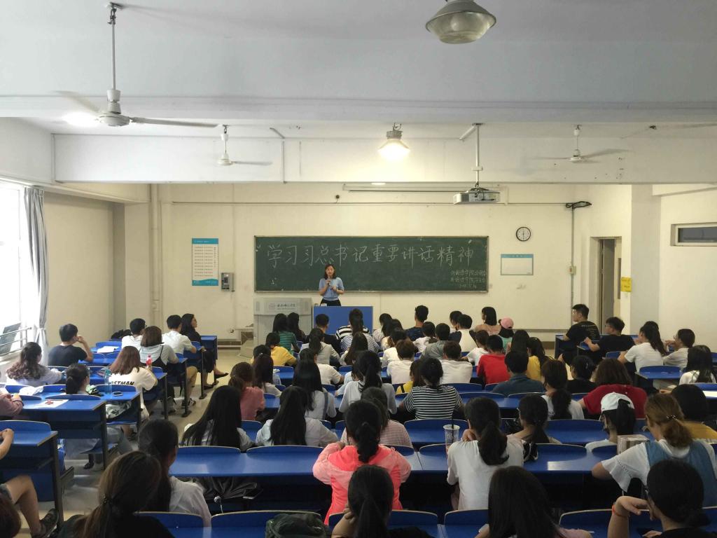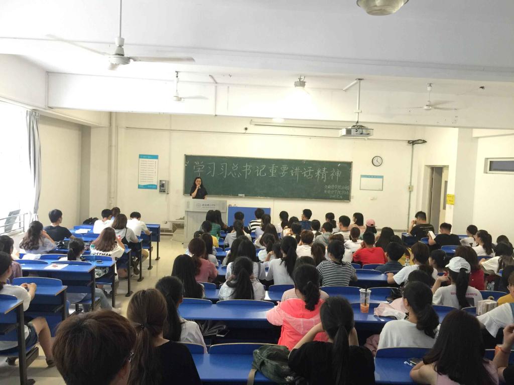 会议最后,分团委书记江洋带领同学们详细地学习了习近平总书记的重要讲话内容。他说到,作为新时代大学生要抓住时代赋予我们的机遇,努力提高自己的知识水平,博览群书,开阔自己的眼界,准确把握好青年时期每一个重要时间节点。会上江洋和同学们一起分享了习近平总书记对广大青年提出的几点希望:“一是要爱国,忠于祖国,忠于人民。二是要励志,立鸿鹄志,做奋斗者。三是要求真,求真学问,练真本领。四是要力行,知行合一,做实干家。”