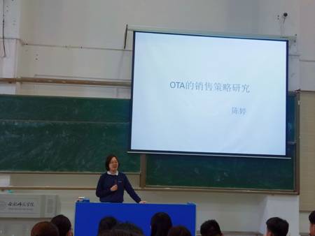 本网讯 4月25日下午在逸夫楼西阶一教室,永利集团304am登录商务英语专业教师陈婷基于她在读博期间的研究内容,为2015级商务英语专业的同学带来了主题为“OTA(在线旅行商)销售策略研究”的学术报告。