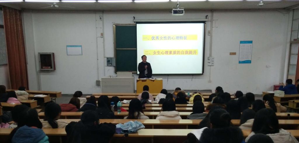 本网讯 为引导外院女生更多地关注自身道德修养、文化内涵、心理健康、独立意识等综合素质的提升,帮助女生们走成长、成才、成功之路,3月9日,以“学会自我保护,提升女性心理素养”为主题的女生节心理讲座在三孝口校区西阶教室举办,永利集团304am登录专升本班、2016翻译班同学参加了讲座。此次讲座由永利集团304am登录分团委书记江洋主讲。
