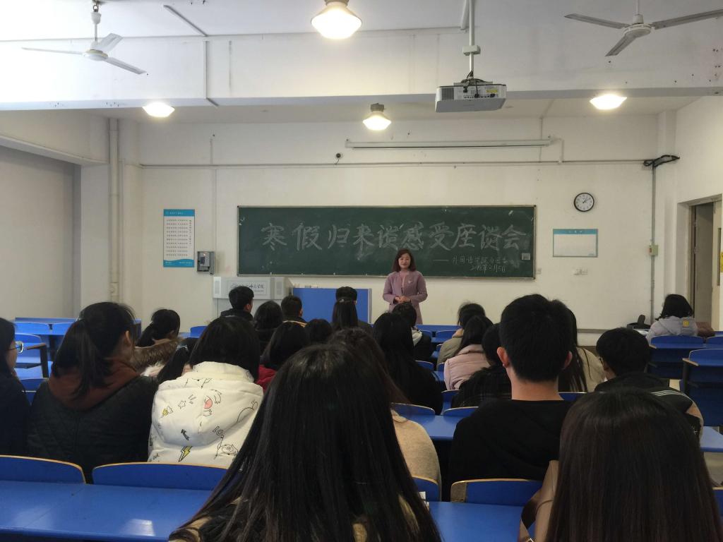 本网讯 为及时了解同学们在寒假期间的所见所闻,永利集团304am登录分团委于3月5日在逸夫楼109召开了“寒假归来谈感受”座谈会。永利集团304am登录党总支副书记穆娟、各班团支部书记及团员代表参加了此次座谈会。座谈会由永利集团304am登录分团委书记江洋主持。