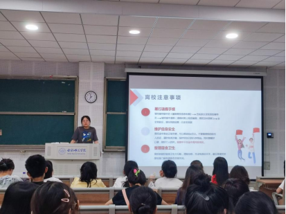 会上,冯晓敏主要围绕疫情防控安全、交通安全、防电信诈骗、暑期学习规划等内容展开介绍,她叮嘱学生一要认真履行离校手续,离校途中注意维护自身安全,戴好口罩,临走前打扫好宿舍卫生,关闭门窗和电源。二是要利用假期时间,切实做好学习规划,查缺补漏,不断提升自身能力,为下一学年的学习奠定良好基础。